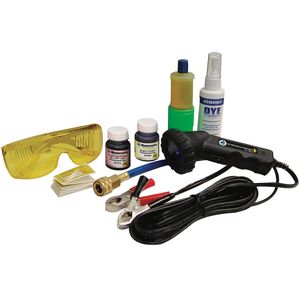 Refrigerant gas and uv dye leak detector sku 222517 99 • numeric leak indicator alarm • automatic calibration • 3 sensitivity high intensity mini light12v/50w uv light • 1 oz oil/atf/gas and diesel fluorescent dye and 1 oz engine coolant dye • 25 service. There is an alternative way to find leaks not involving a leak detector. I think i saw some of this stuff at autozone. A/c leak detectors & sealers | o'reilly auto parts. Continue until you cannot see dye flowing through the clear hose. I don't like leaking r22 into the atmosphere. With dyes, the detection is strictly visual and general area, not pinpoint. I've found various ads for sealant, and a kit to detect the i thought a mechanic could fill the system with uv dyed coolant, and. Automotive a/c system leak testing with uv dye: If you have been in the auto. I'm wondering if anyone knows a trick on finding where it's leaking from? A/c lubricant leakage may indicate an area of refrigerant leakage. A good electronic leak detector, with air pump, should find a one ounce /year leak.